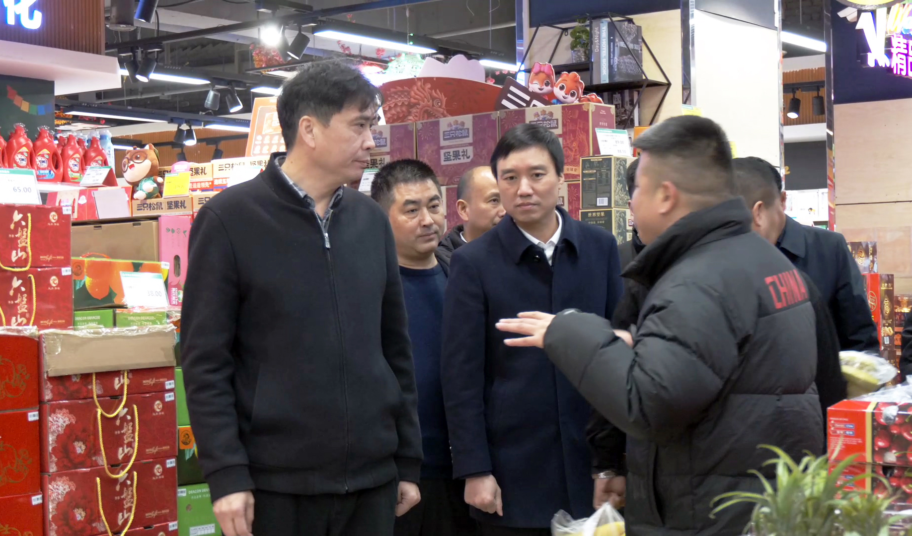 2月4日上午,区长吴大林带领区应急管理局、市场监管局、经贸局等部门负责同志,在中心城区督导检查市场保供和重点领域安全生产工作。区委常委、常务副区长晏清泉一同检查。